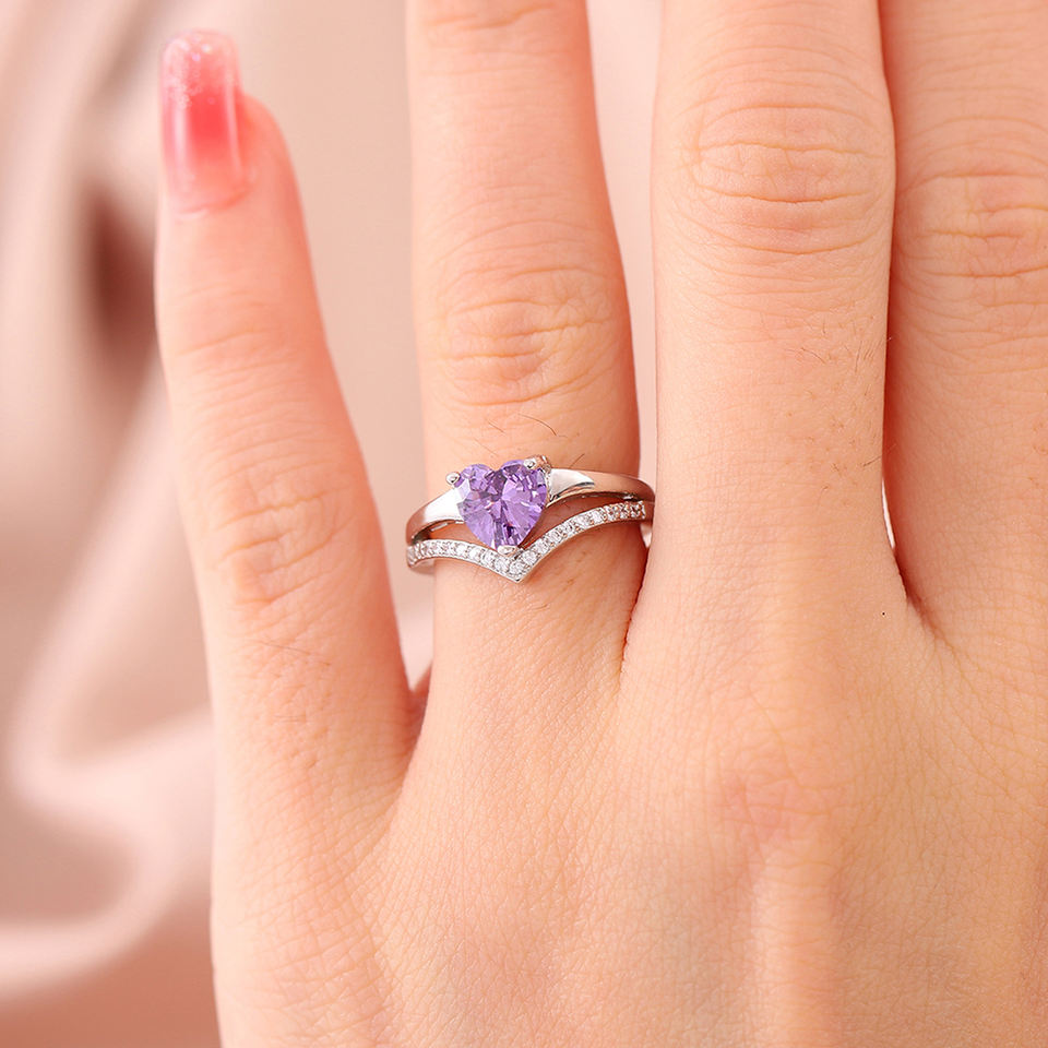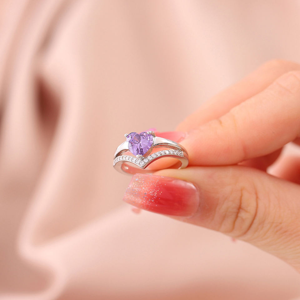 Hainon Classic Heart Shaped Zircon Ring Wedding Engagement Ring Jewelry