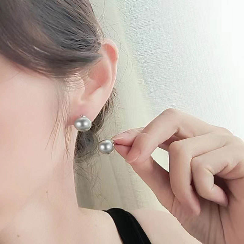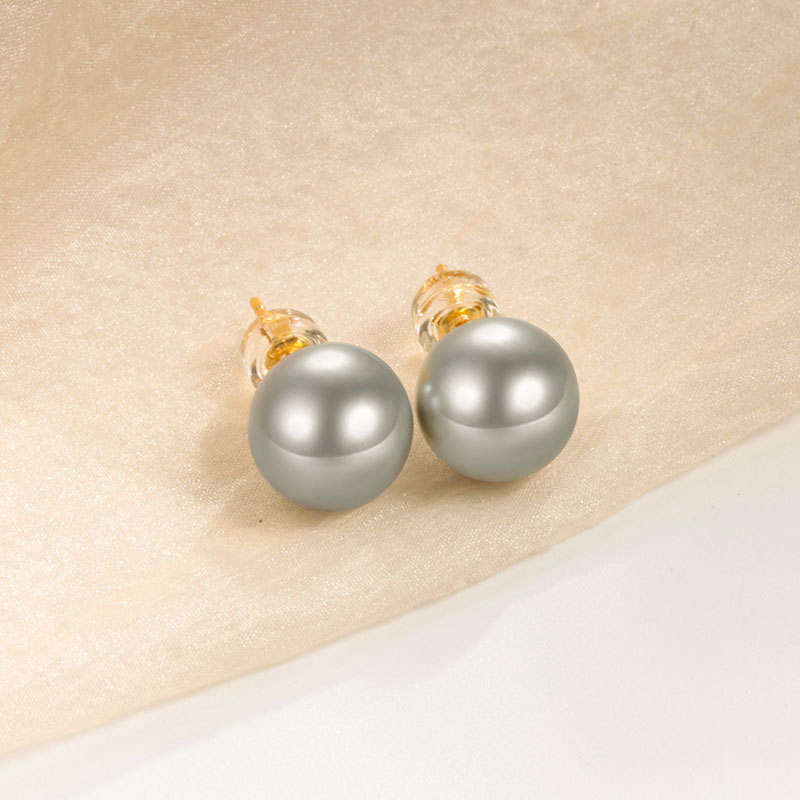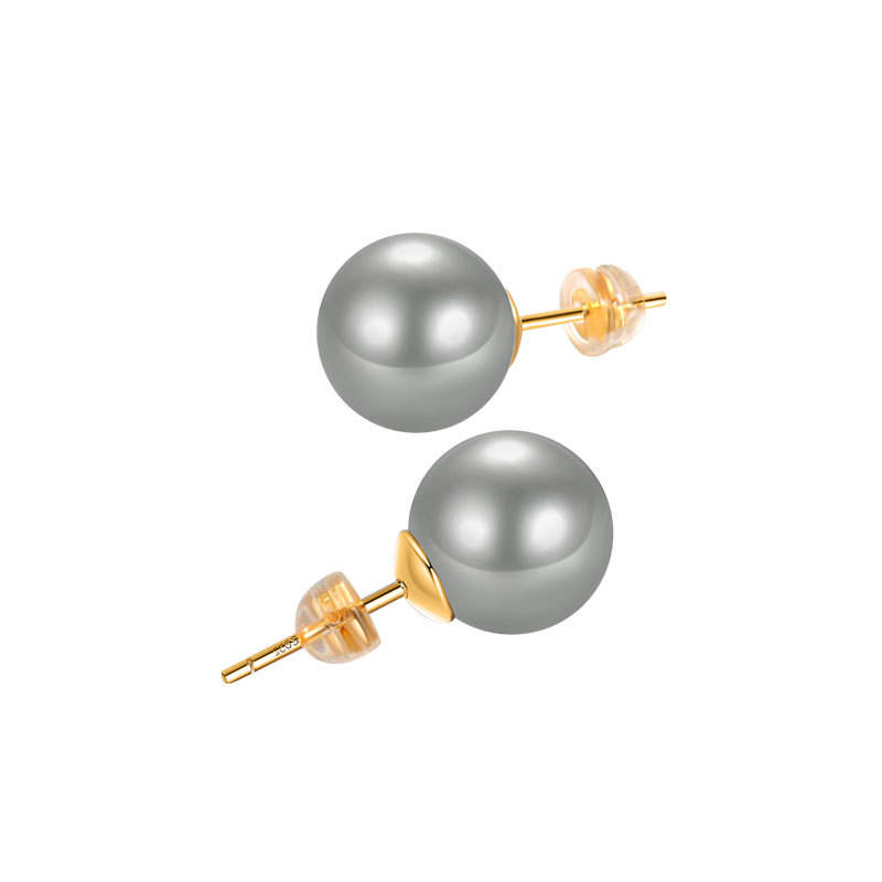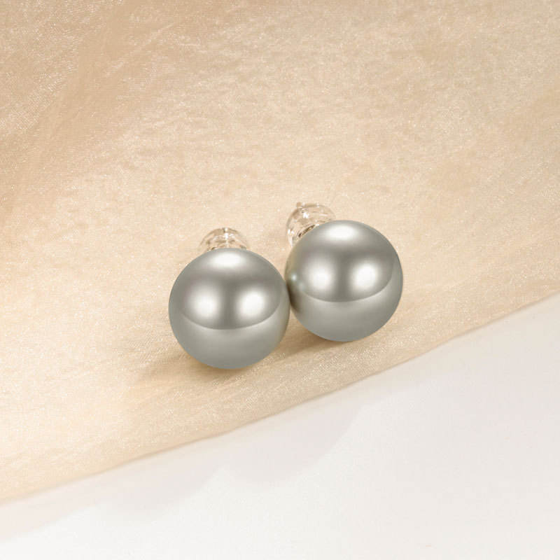 Hainon S925 Sterling Silver Classic Grey Pearl Stud Earrings